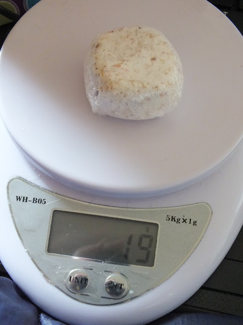 This was infact the cheapest sample I've ever receive in a beauty box.. And it didn't even weigh 1g. Its actually that thin that if I try to use it it will just snap. Or slide out of my hands... Full size 90g is worth £3.45 which would make it approximately 4p per gram.. But since it doesn't even weigh 1g its even less than that! I mean really. .. Sending a sample that only values £0.04. It may be a lovely soap but a sample that tiny how am I even supposed to test it? My soap sample was supposed to weigh 8g.. I think they were a bit off with that.